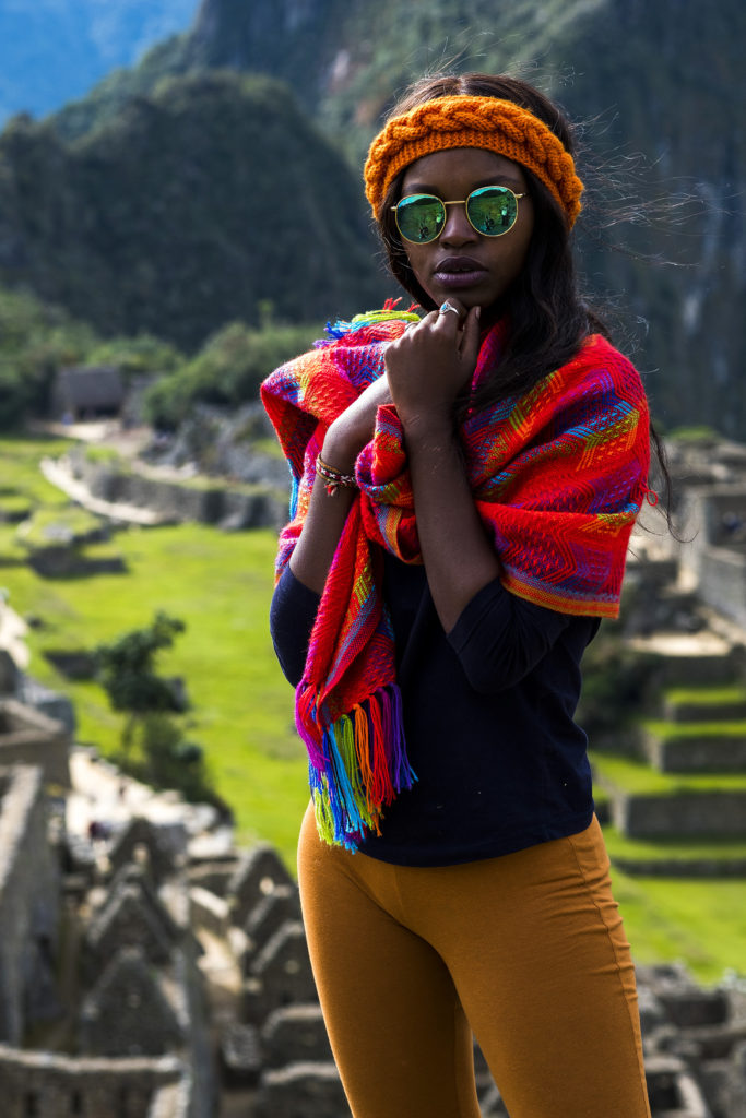 The photographer in me sprung into action – first things first – we had to get the typical shots of the citadel, first clean and without people, and then with each of us, and then both of us in the shots 🙂 We spent maybe 20mins getting these shots, assisted by two helpful American tourists who shot the pics of Akhona and I together. Then I shot some cool, more styled shots of Akhona in the bright Alpaca jersey we had bought a few days earlier in the Pisac market. I donned my Peruvian beanie for some shots, as well as my typical Alpaca jersey bought for just these shots. We knew that we had around 3 hours before the light faded, the cold set in and we would have to head back down the mountain. Time was of the essence!