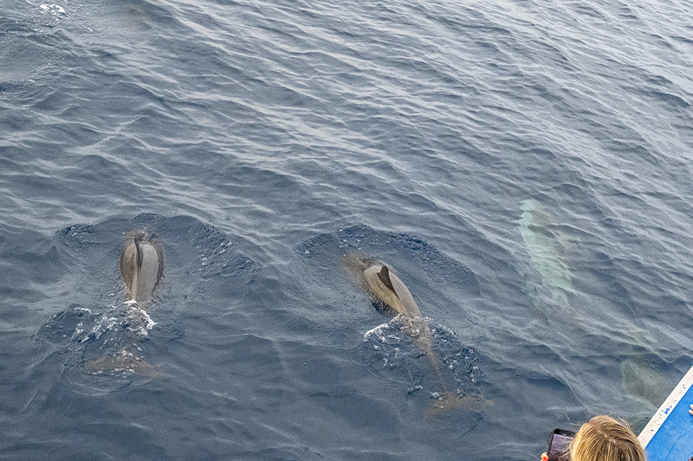Dolphins seem to be natural showmen, and soon many of them began performing acrobatics clearly intended to elicit a response from their audience on the boat. Multiple somersaults, small groups jumping out of the water in unison…it was just amazing, and a perfect birthday surprise for Akhona…