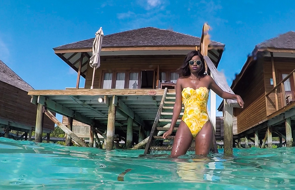 We frolicked in the water like newly-weds and shot a few obligatory selfies before I convinced Akhona to float next to the deck so that I could shoot some cool shots of her in the swimsuit she bought in Bali and had been saving for the resort. The color of the water in the Maldives is something to behold, as is its clarity when the weather is good.