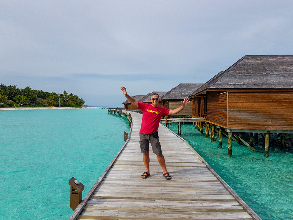 Upon arrival at Veligandu it was obvious we were in a top class 5 star resort. Service was as expected in a resort of this stature, and the over-the-water villa was impressive, with an outdoor private jacuzzi and stairs down into the dazzling aquamarine water. As the weather was good we immediately started shooting some cool photo’s as the island provided so many photo opportunities.