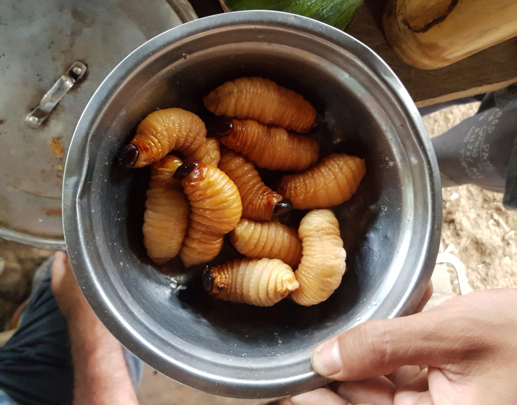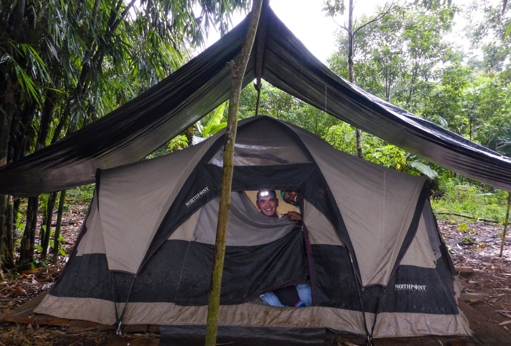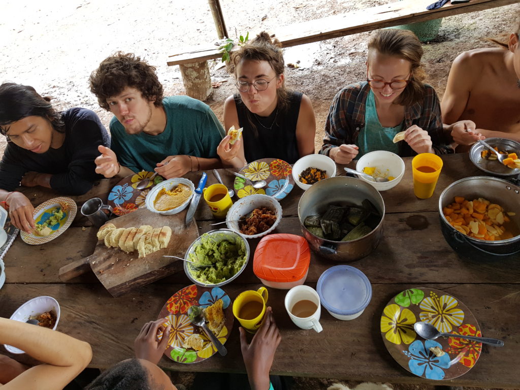 During our stay we realized that we were best equipped to cook tasty meals while other volunteers went off to help cut plantain and place fish traps in the river. The fish traps sadly did not produce any meals during our stay. The only other protein presented to us were fat grub-like worms found by Emily in a rotten tree trunk, but we politely declined the snack 🙂