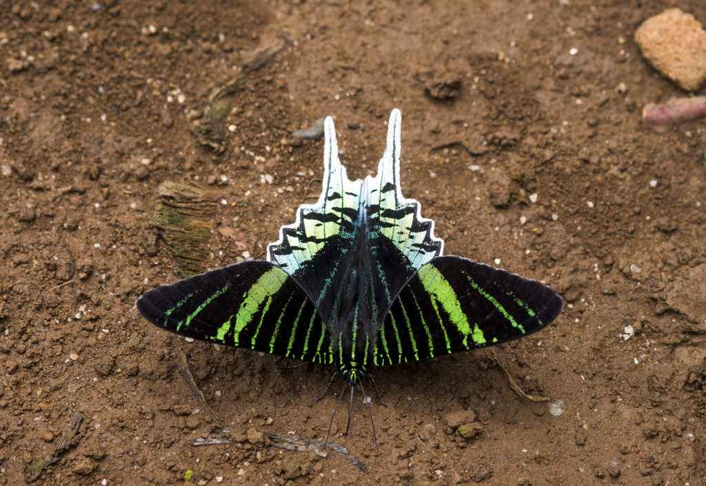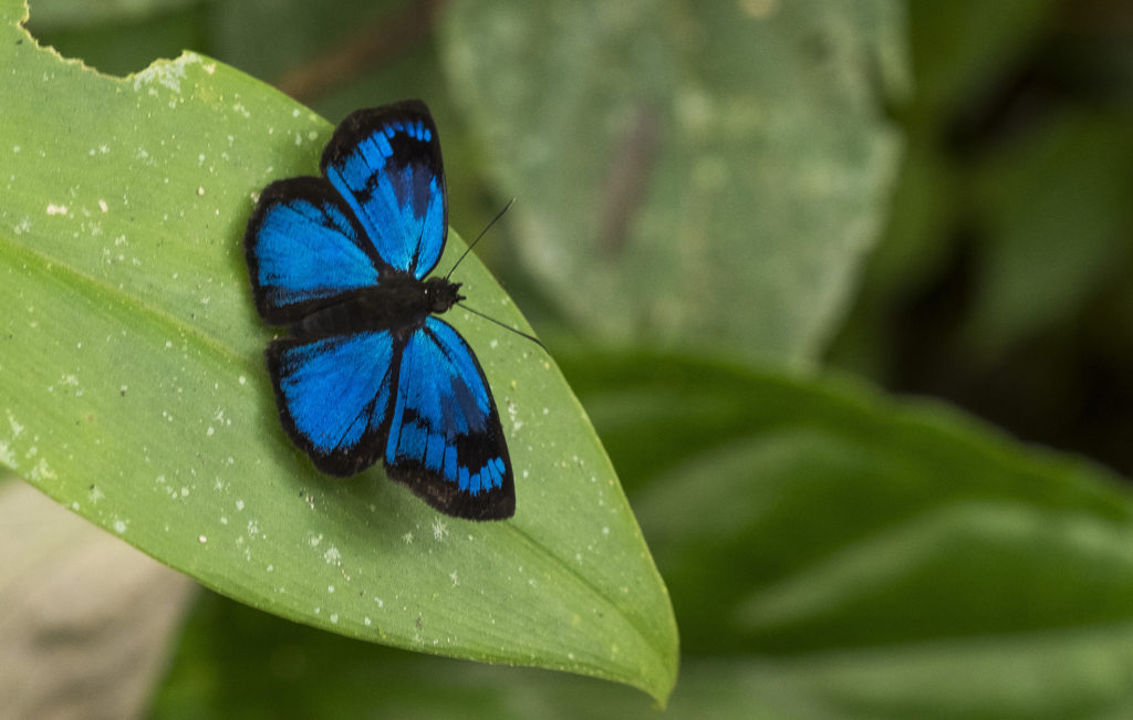 Although we had some serious rain during our stay, we managed to take a few walks into the forest in order to try and experience some of the wildlife in the area. We saw mostly butterflies – lots of them with some being the size of small birds. Some even sat on us when we stopped to photograph them 🙂 We also saw flocks of green, noisy parrots flying around in the late afternoon and sitting in the trees surrounding the compound.