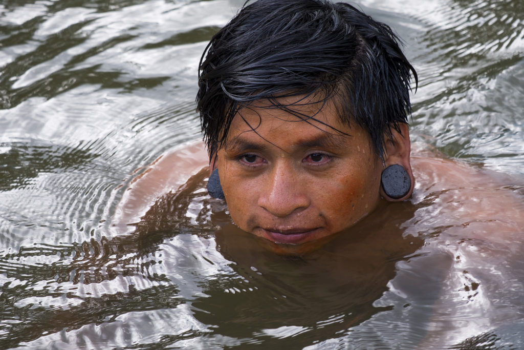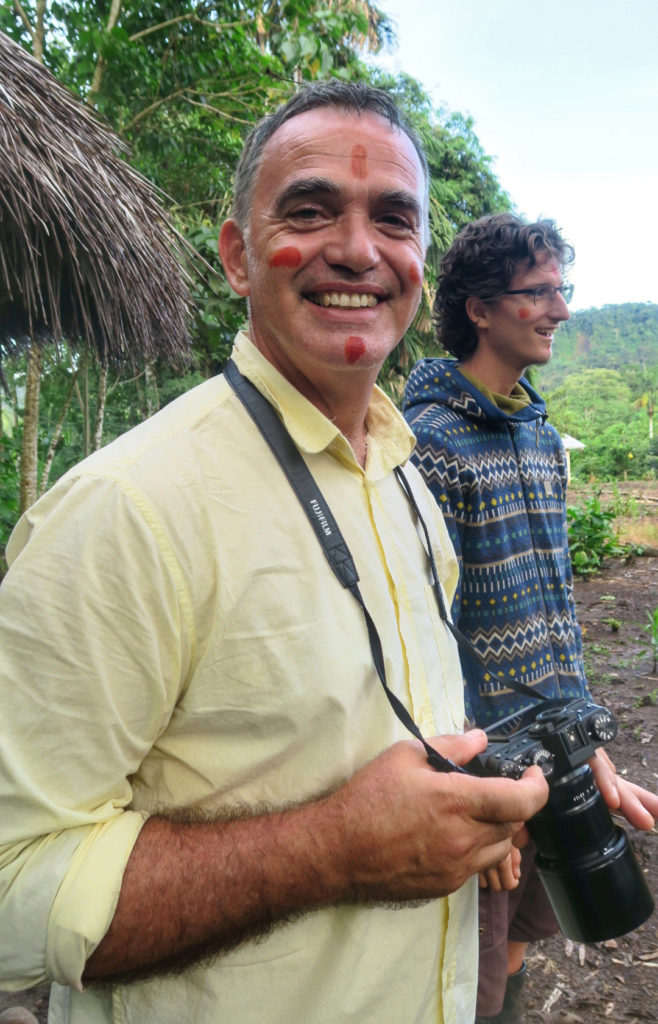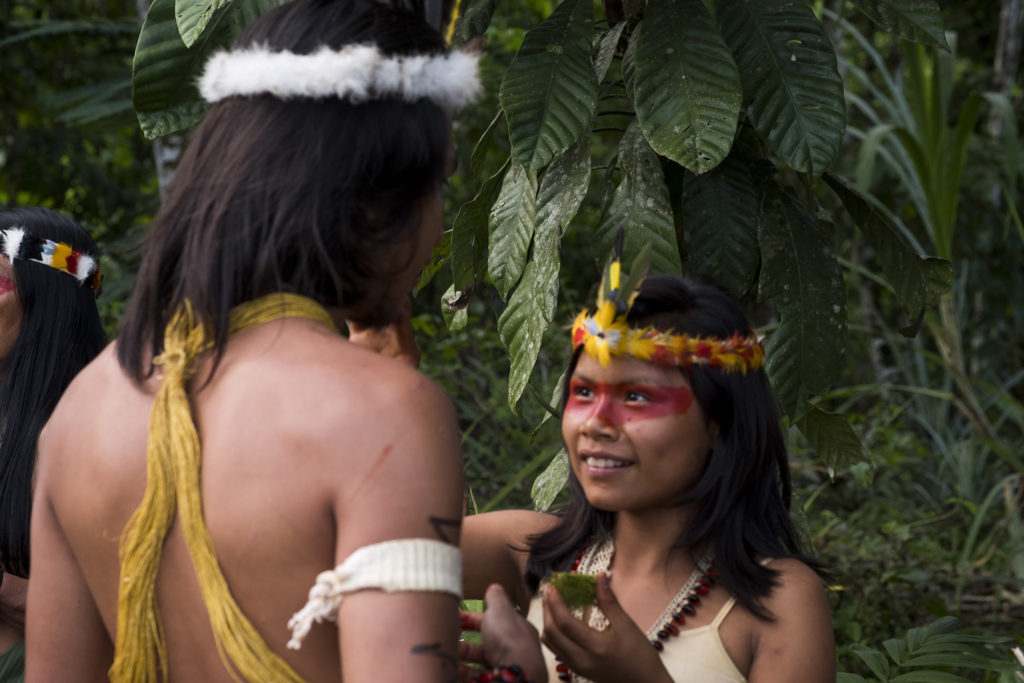 Before the ceremony we all got our faces painted with the juice of a berry which the Waorani pick in the forest. The red paint across their eyes is their trademark and I was really keen to capture this on film.