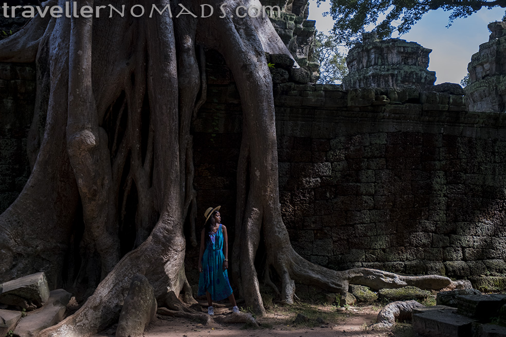 Unfortunately Chinese tourists have developed a bad reputation for swarming over a tourist site with little regard for other visitors, so trying to avoid arriving during or after a tourist bus has arrived at a particular temple becomes a vital element of one’s planning. We tried to stay ahead of the curve by starting at 05h00 the first morning, getting some quick shots of the sunrise at Angkor Was, and then moving quickly to the main temple complex for some interior and exterior shots. Then we raced off to Bayon and managed to shoot some cool pics before the hordes arrived. We kept ahead of the crowds for most of the day, and on the second day we skipped Angkor and got to Bayon before anybody else. After an hour there we hit Ta Phrom, but tour busses were already arriving. We managed to find some cool spots to shoot off the main tourist path through the temple.