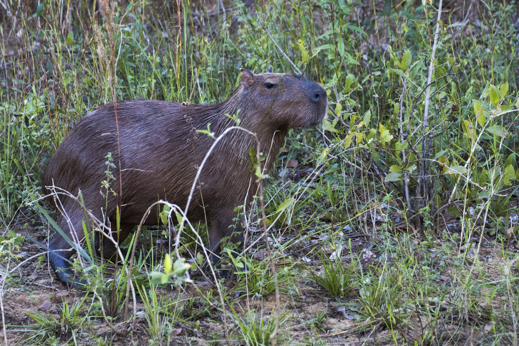 We did however see lots of caiman in the water and along the river bank adjacent to the camp site each day. We also saw quite a few capybara, as well the paw prints of a jaguar on the sandy road leading to the Pousada. Unfortunately we were not lucky enough to see the jaguar responsible for the prints – they are notoriously elusive and to have a better chance of seeing one, I think the North Pantenal is a better bet. We also glimpsed two wild otters, but didn’t manage to photograph them because a noisy Columbian girl in our boat kept shouting and laughing and scared them away. We had sharp words with her that kept her quiet for the rest of the trip 🙂
