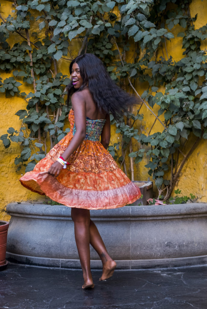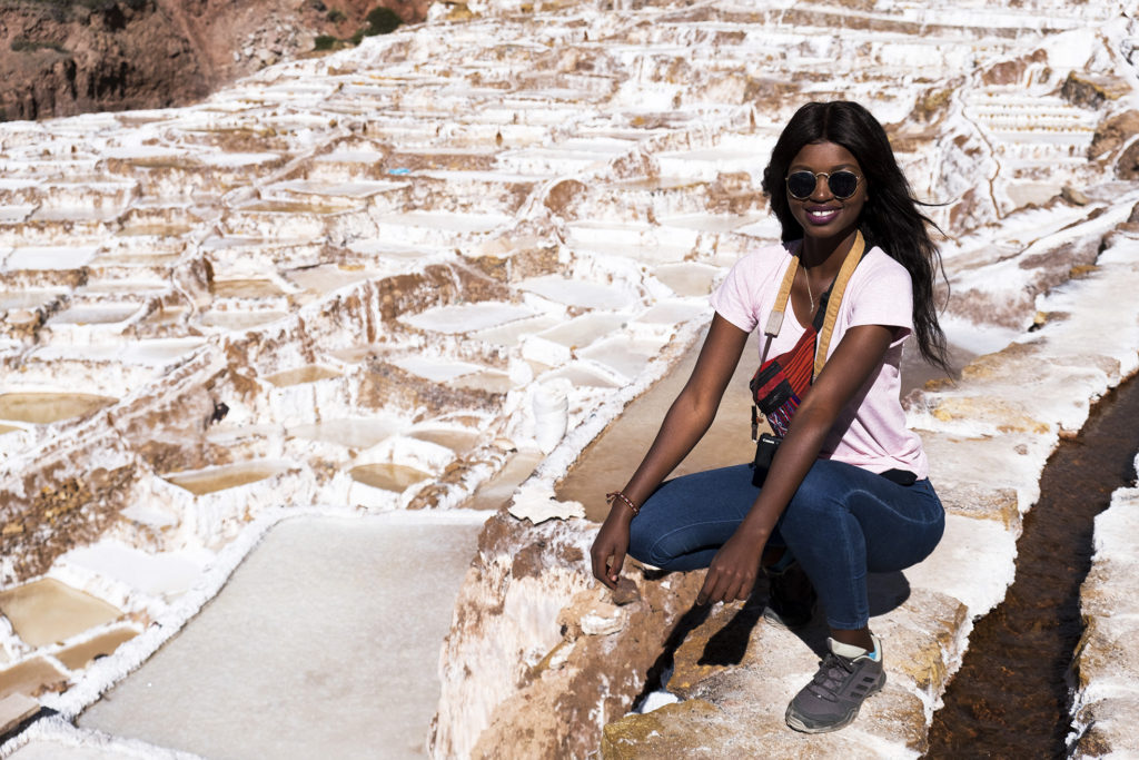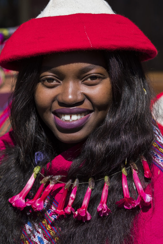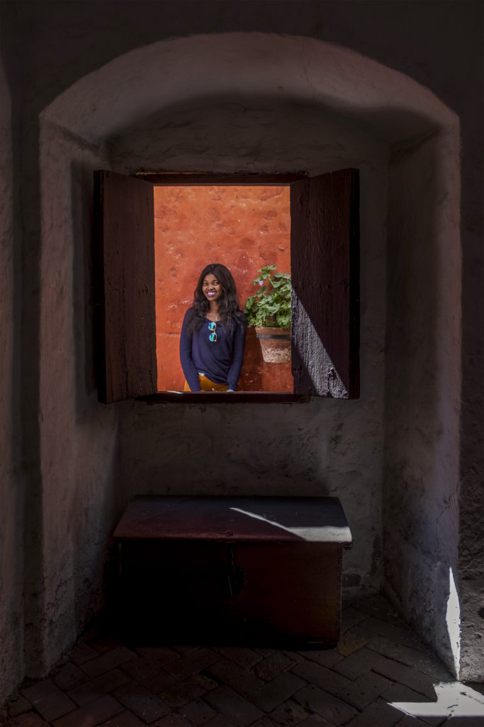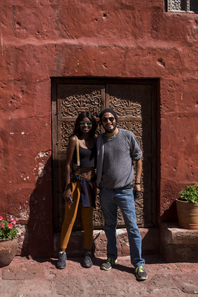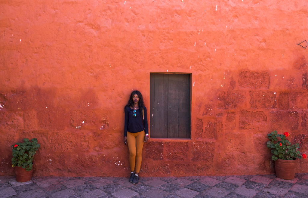 We set off for Araquipa with our favorite Peru Hop guide Fabio at the helm. If we had known that Arequipa was such a cool place we would have stayed longer than the one night we spent at the really amazing Flying Dog hostel, which is located in an old Spanish mansion. After a few hours rest we joined Fabio for some sightseeing, which included a visit to famous frozen mummy Juanita, which was a very touching if not macabre experience. Then we spent over an hour at the fabulous Santa Catalina Monastry, which was just so striking. The photographer in me went into overdrive, and I shot Akhona in several great locations around the grounds of the monastery. It was definitely well worth the visit and 40 Sol entry fee.