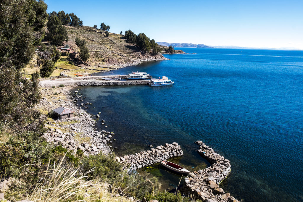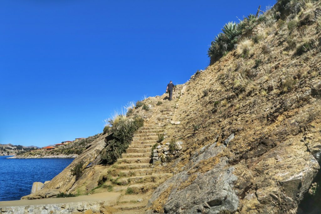 On our second day in the town we went on a Bolivia Hop side trip to the famous Isla da Sol, rumored to be the birthplace of the Inca. It was a fitting ending to our Inca adventure, and even though I was still sick we just had to do it. We decided not to hike across the island, but rather just go ashore at the Temple of the Sun for a few minutes, and then get back on the boat and travel to the next harbour where the main village is, where we spent an hour ashore. I just didn’t have the strength for a strenuous hike… When we arrived at the island after a lengthy boat ride I ran up the steep stairs to the toilet 🙂 Damn…