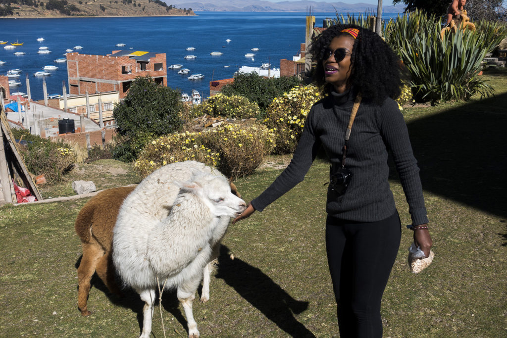 Unfortunately I was quite sick with what we think was food poisoning or gastric flu during our time in Copacabana, so I didn’t get to do much there, and stayed in bed for one day to recover. Martin sent a big pot of teamed honey to help in my recovery 🙂 Nevertheless we did feed the beautiful alpaca’s and do a little photoshoot with Akhona despite me feeling really weak and sick….