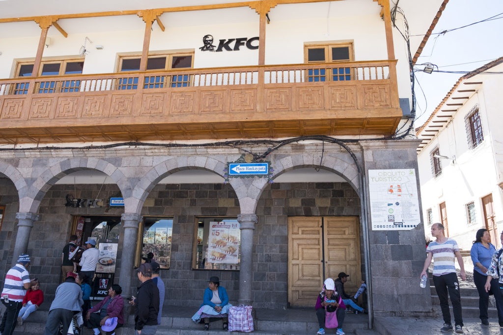 In an attempt to not disturb the character of the Central Square, even famous US fast-food franchises have to comply with regulations regarding the look of their outlets – Starbucks must be the only branch in the word built on Inca foundations 🙂 The KFC branch is almost unrecognizable…