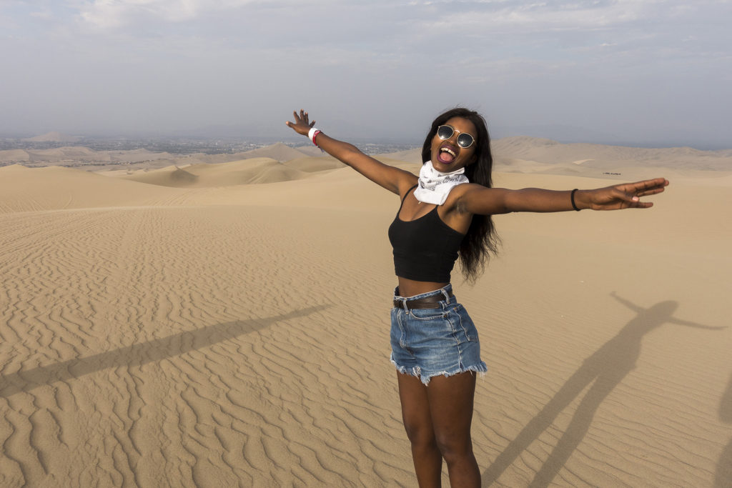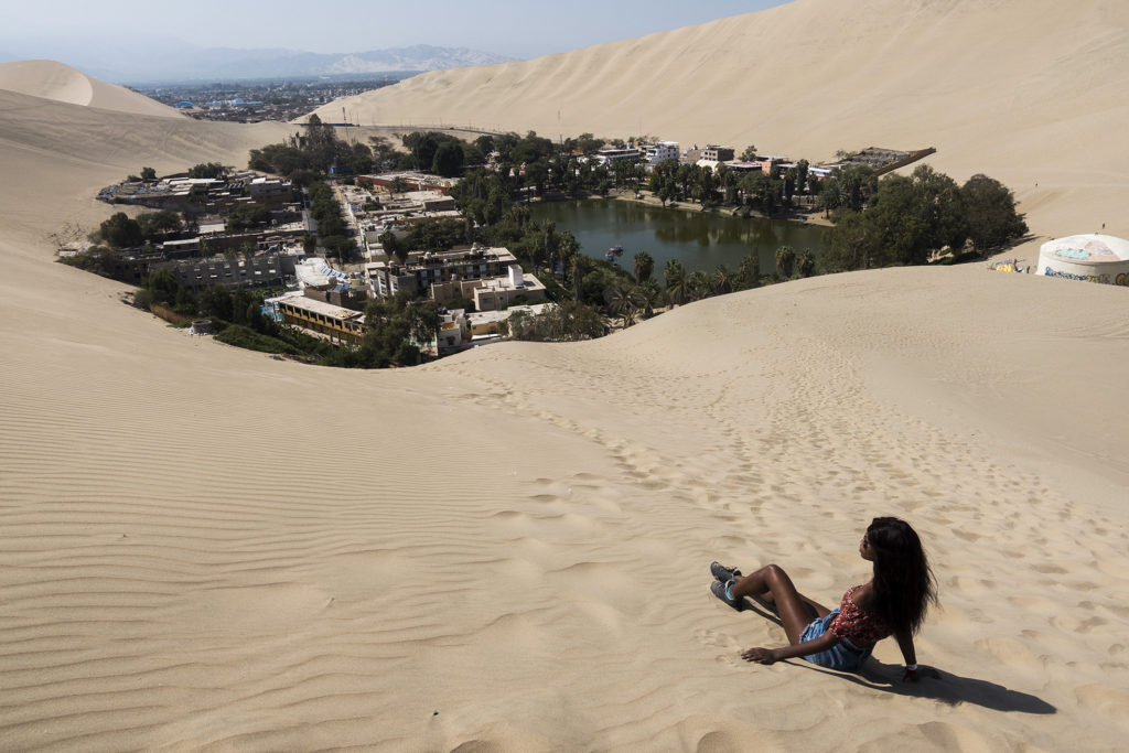 From Paracas we travelled to the small oasis of Huacachina where we stayed at the very quaint Wild Olive guesthouse right on the lake. The big attraction here is the dune buggy and sand boarding excursion for $ 15/person, which we took shortly after our arrival. It was a real blast, and we had a particularly daring driver who had us flying over massive sand dunes at breakneck speed. After around 25min of this crazy driving we reached a particularly high dune where the sand boarding took place.