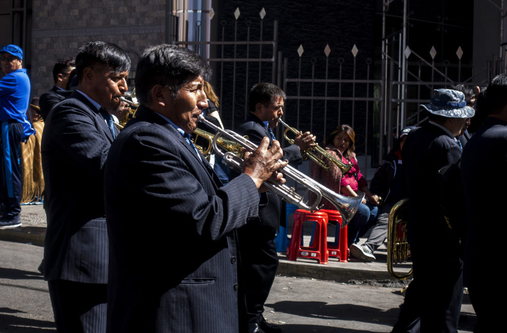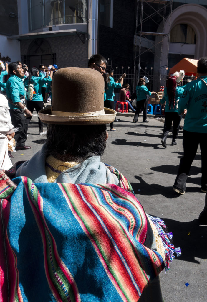 The following day we embarked on the final leg of our trip from Lima to La Paz with Bolivia Hop. The trip involved crossing a small bay in Lake Titicaca in a tiny boat while our bus went on a large pontoon…this we did at around 8pm at night in the freezing cold. We finally arrived in La Paz at around 10.30pm, and were dropped at our hotel in the famous Witches Market in the old town. The little Residential Alta Vista proved to be very good value for money at $25/night and we really enjoyed staying in the midst of all the action, especially as there was a big parade on the first day of our four day stay in La Paz. We grabbed our cameras and set off to capture the chaos that is La Paz.