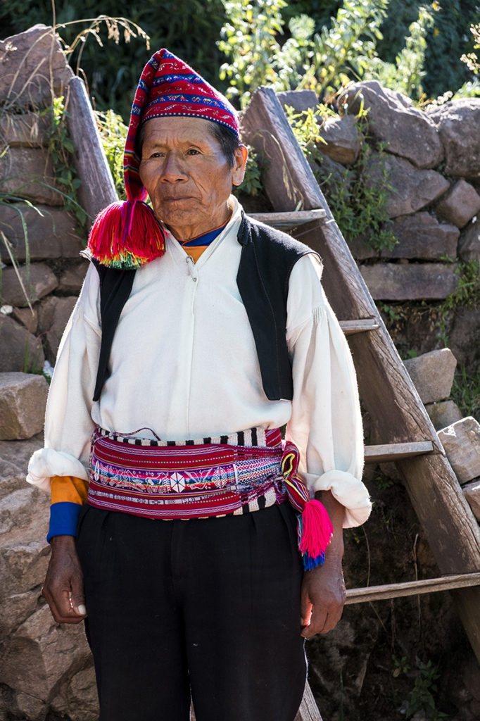 After about an hour or so of exploring the little island we had landed on, and taking a trip in one of the traditional reed boats across to a nearby island, we got back on our tour boat and set off on a two hour trip to the more distant island of Taquile, which is famous for its fine weaving and knitting done mainly by the men of the island. Upon arrival we had to climb what felt like hundreds of stairs and steep pathways to get up the the square of the main village on the island…