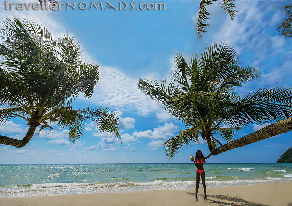 There were some great photo opportunities on Koh Kood, especially when it came to the sunset, which we could view from our resort. Our first two days yielded the best sunsets of our stay, and luckily we were right there to capture them. We also found a few cool spots with coconut trees drooping into the sea which produced some cool shots of Akhona. On the beach in front of the plush High Season Resort we found two cool coconut trees and I ordered a coconut from the bar to use as a prop, together with a Coke for myself. I was not prepared for the 330B ($10) bill that came with my order though 🙂 That coconut was photographed to death!