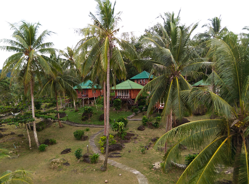 So it was with a certain degree of excitement that we boarded the bus from Bangkok to Trat, followed by a 45min ferry ride to Koh Kood. The island is not particularly popular with Western travellers, but is a favourite with weekend tour groups of Thai tourists from Bangkok, who come on all-inclusive deals and stay at one of several large resorts on the island. The resort we were headed to is the only resort owned by a foreign owner on the island, and it caters more for foreign tourists. At B2800/night (US$80) it is not considered a budget option, and has one of the best locations on Koh Kood with great views.