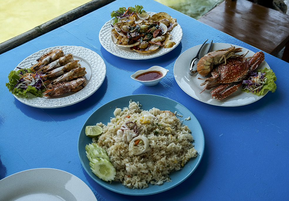 On our off days, which we could determine we hired a scooter from the resort and explored the rest of the island, visiting other resorts as well as the fishermen’s village on the other side of the island where we enjoyed a fresh seafood feast for the the princely sum of $30 for the two of us including two massive smoothies, prawns, scallops, crab, lobster and seafood fried rice. On the way to the village we had some excitement when our scooter had a flat tire in the middle of the jungle. I had to push the bike up and down the hill so that we could shelter in an abandoned cottage while we waited almost an hour for help to come. Once the tyre was replaced we were on our way…that seafood meal tasted all the more delicious following our little adventure.