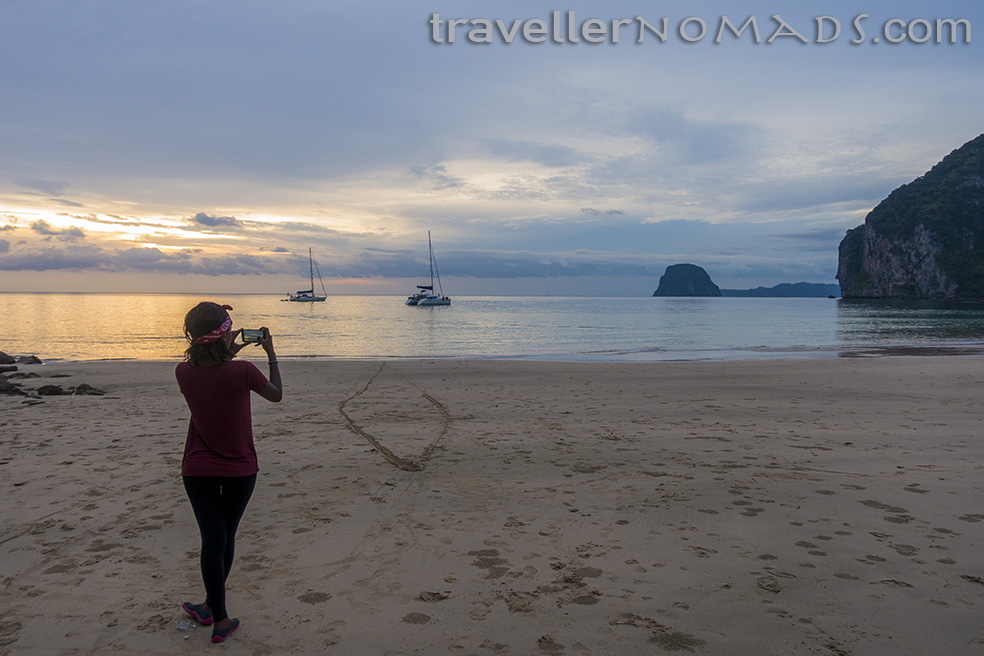 There are essentially two easy to reach beaches on Koh Mook – one surrounds the protruding natural spit adjacent to the village and pier where the luxury resorts of Sivalai and Pawapi are located. We took a walk around the length and breadth of this beach and found that it no longer looks much like the photographs on the resorts websites. It was dirtier and eroded away and we felt lucky to have decided not to book at either of these resorts for a day or two of luxury. The second beach is Farang Beach known locally as Charly’s Beach after the soon to close resort located on the bay. It is in our opinion a better natural beach… And the best spot to watch the sunset.