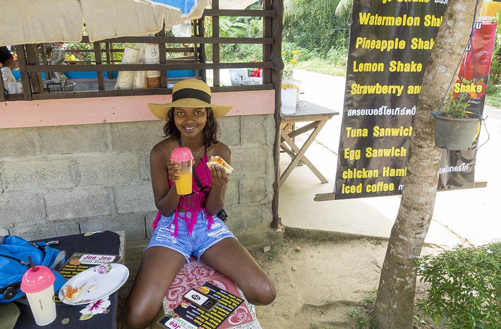 We stayed on Koh Mook for five nights and ate at the restaurant at Mookies each night, while we tasted meals at other restaurants for breakfast and lunch on most days. For us finding tasty, reasonably priced food has become a daily mission as in Thailand most menus consist of rice or noodles in various forms, soups and sometimes seafood. After several weeks it can become boring to eat similar meals every day. So we tend to try and find fresh fruits to eat for breakfast just to add some vitamins to our diet:)