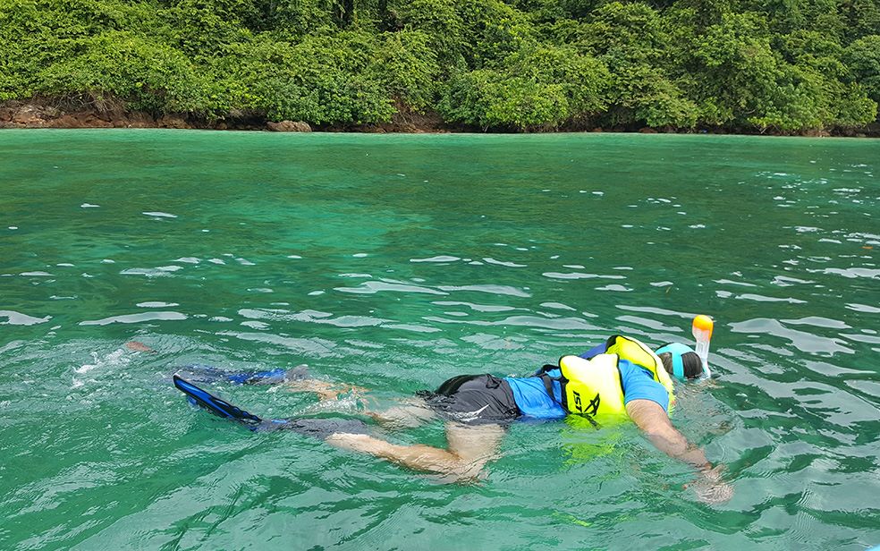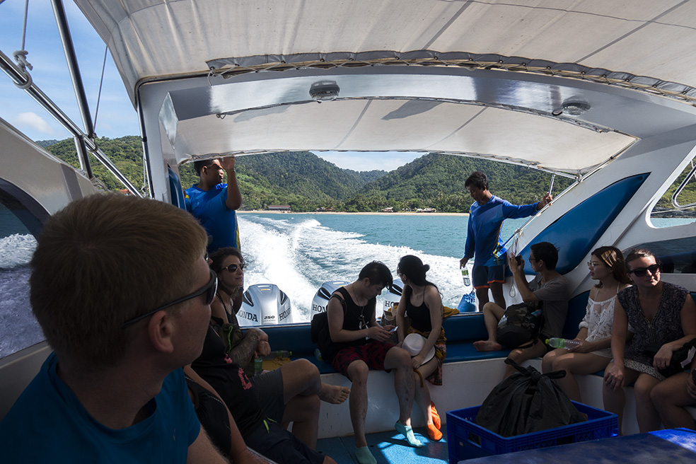 As snorkeling is not great off the beach on Koh Lanta, I decided to do a day trip to Koh Roc, which is famous for its clear waters and reefs. As Akhona is still learning to snorkel she decided not to do the trip, but to rather relax and catch up with some editing at our resort. So I booked myself on a speedboat trip to Koh Roc, and at 08h00 I was on the boat with 39 other travelers, en route to Koh Roc, about 1 hr away. I spent much of the trip chatting to a Swedish couple who were on vacation with their three kids.