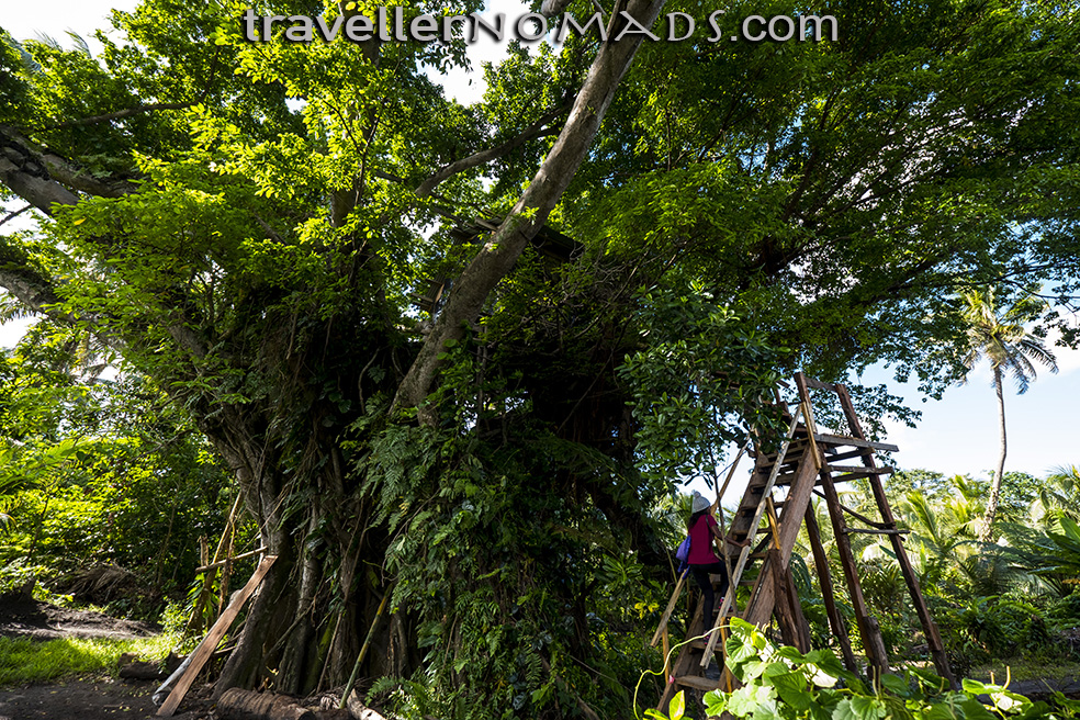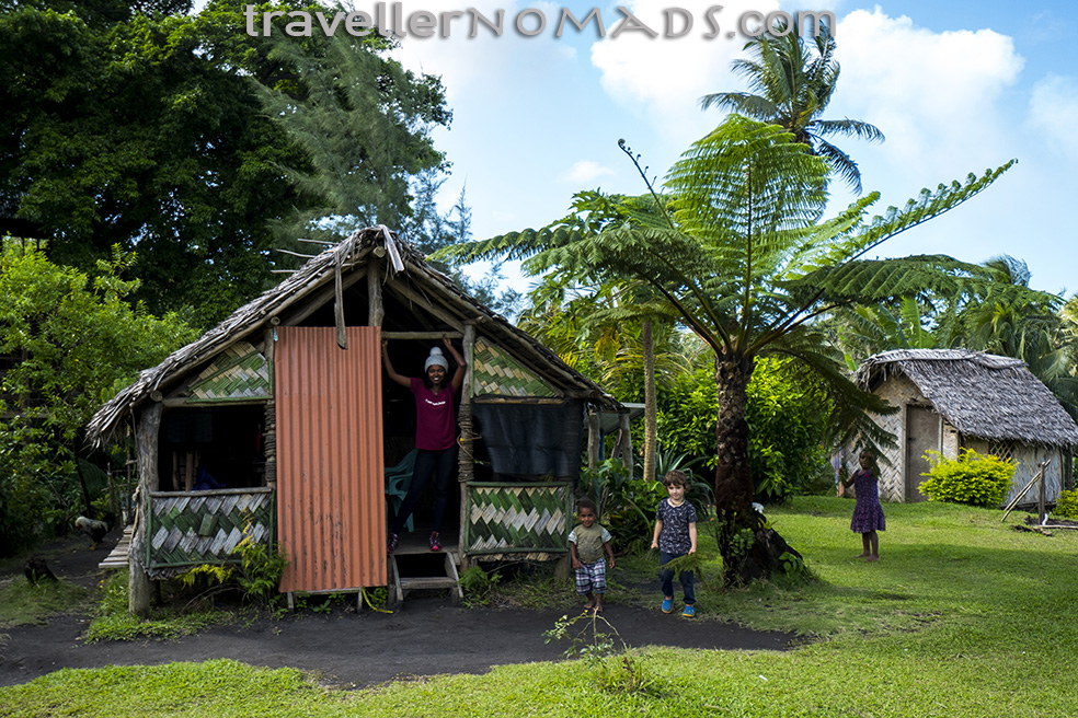 The cost of extremely basic accommodation runs at around US$50/night for a basic bungalow with a shared bathroom with cold shower which in our case had a garden tap as its head. We resorted to asking for a bucket of hot water to wash in each day. Meals provided by the local accommodation is also very basic as the island has no electricity supply – another infrastructure failure by government, so locals have to either run a generator at incredibly high cost, or resort to solar power, which is only sufficient for a few bulbs for night use. Refrigeration is not common unless one stays in a fancy resort at a cost odf US$100+ per night. We stayed in a cool tree house at Yasur View Bungalows which look out over the volcano in the distance.