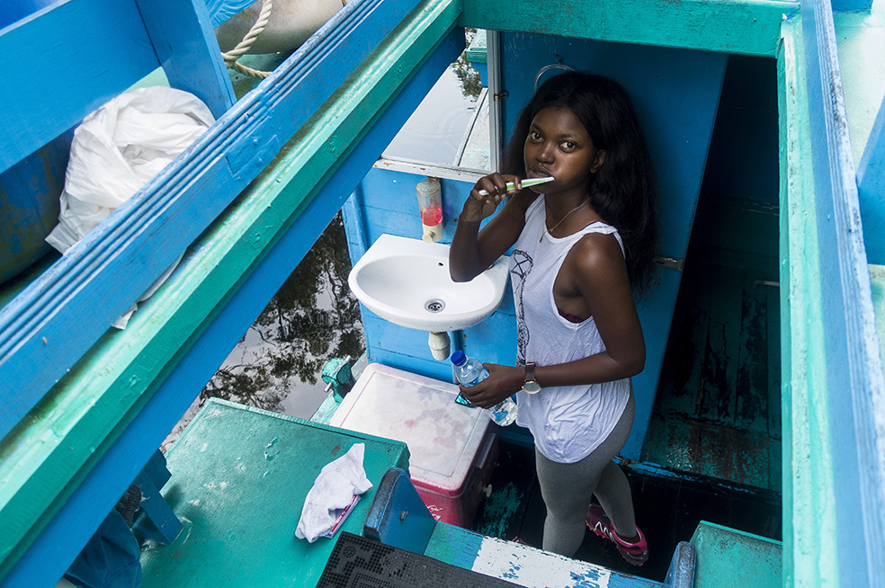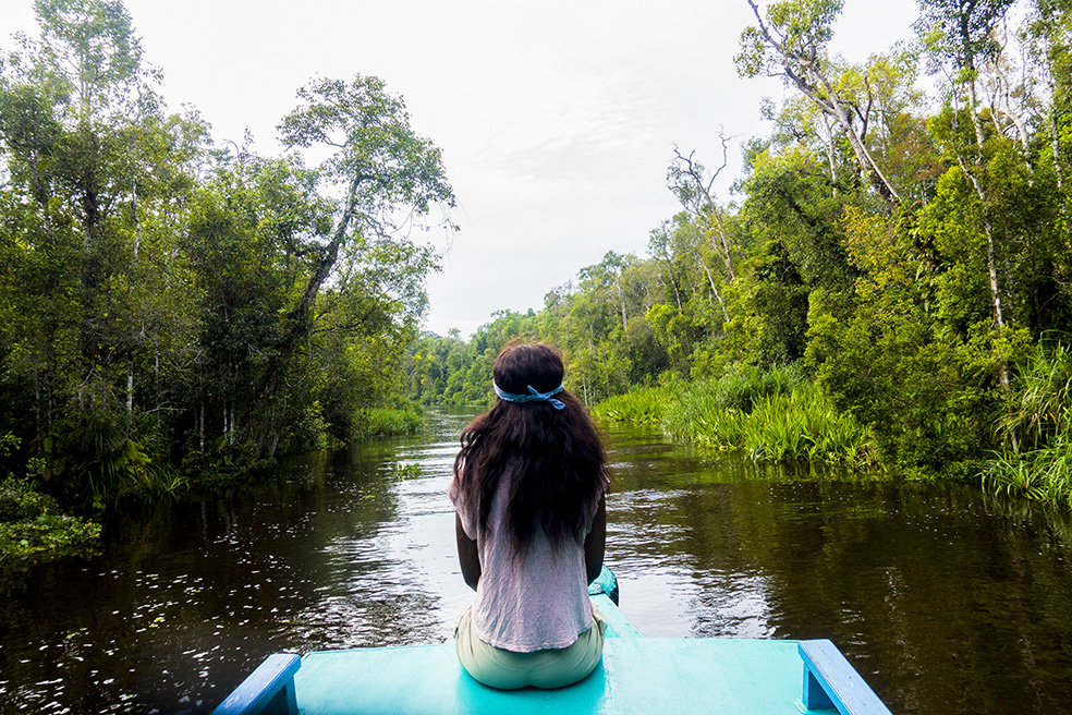 After spending about an hour with the orangutans we headed back to the klotok and carried on up the river before docking for the night on the banks of the river. We ate supper before I eagerly transferred by shots for the day onto my Macbook and edited the best shots. It was exciting to relive the time we saw the first orangutan mother with her baby flying through the canopy. At around 21h00 our mosquito net was set up, and soon afterwards we settled down for the night, falling asleep to the lullaby of thousands of frogs and jungle insects.