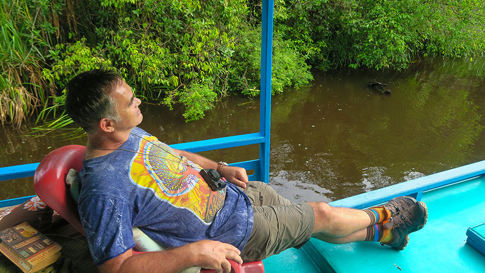 After 40 years of dreaming my dreams I climbed onto a small ‘klotok’ boat with my adventurous partner and ventured into the jungles of Borneo to see the orangutan in its natural habitat… And not a moment too soon as this endangered species clings to existence in the last place on earth it still exists. The fact that I finally got to realize this dream proves that we can all follow our dreams with enough determination…. I did this trip in memory of a wonderful woman, Bobby Campbell, who changed our lives through her kindness…