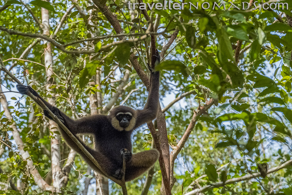 The trek through the jungle was quite a distance, and our guide Sandi showed us massive ants along the way which could be picked up and surprisingly do not bite, unlike the notorious red ants also found in the jungle. He also told us to be on the look out for a friendly Gibbon that liked to hang out in the area in search of an easy meal. Lo and behold, he was the first primate we saw. Just watching this graceful animal fly effortlessly from tree to tree was something to behold, and became one of the highlights of our trip.