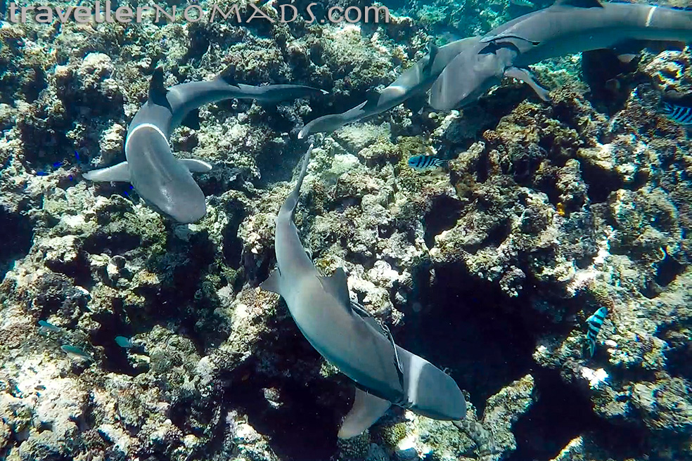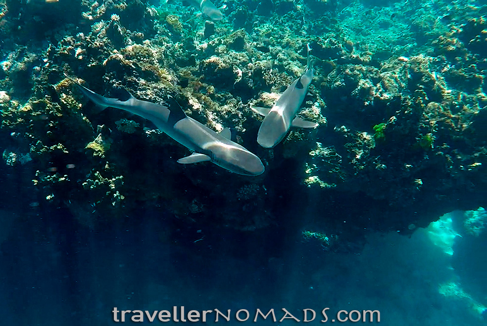 During our stay at Kuata we went on two shark snorkeling trips, which were simply an amazing experience. On both occasions we snorkeled with a metre of several white tip reef sharks, one of which was probably around 1.5m long. These sharks are generally not aggressive towards humans and we only met one traveller in Fiji who had been nipped on the hand by a white tip, but that was during a hand-feeding shark trip at another resort. It was exciting swimming so close to the sharks and watching them glide gracefully through the water gave one a new found respect for these beautiful creatures.