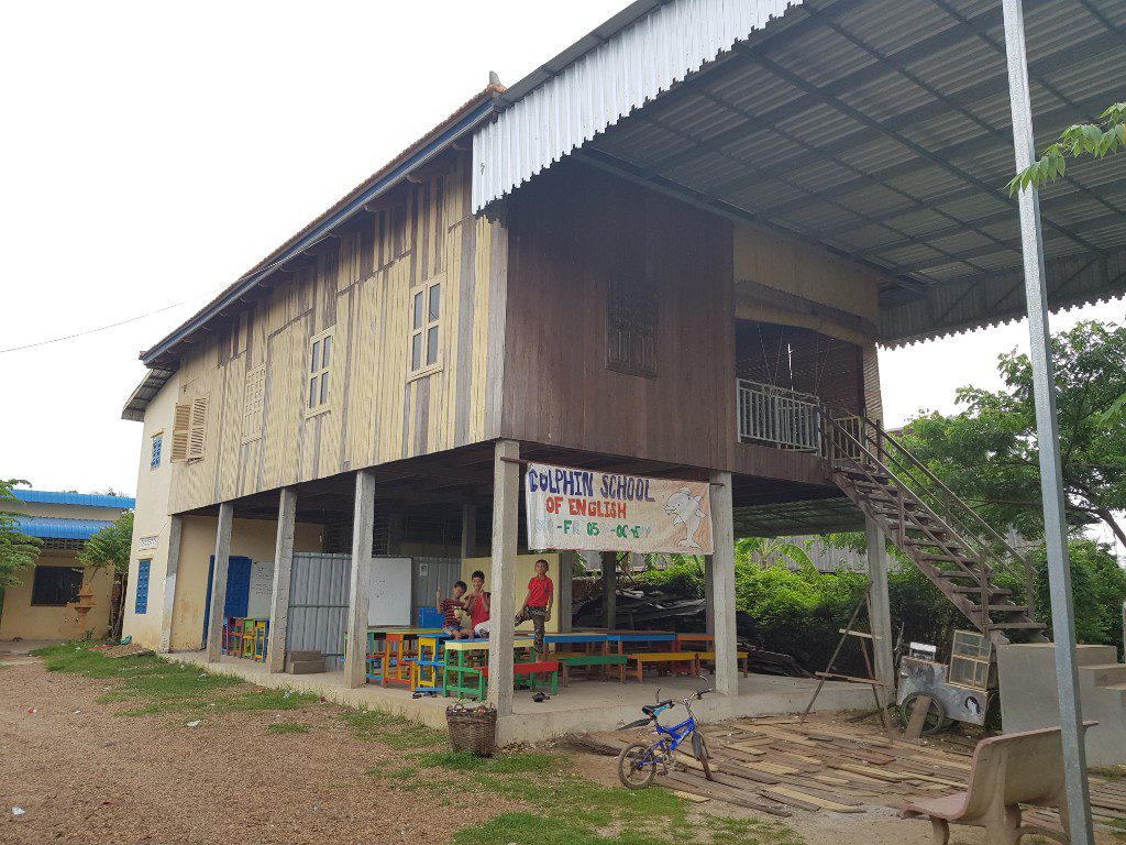 At the moment the Dolphin School has level 1 – 4 classes five days a week offered at the rudimentary school on Mr Yuth’s property. He has built a traditional Khmer house with three bedrooms to house volunteers, and a kitchen, bathroom and common area. Under the house, which is on stilts there are three partially open-air classrooms, and an enclosed computer room. A fourth classroom is located under a tin structure on the property.The Dolphin School also offers free English lessons to staff of local restaurants and hotels when there are sufficient volunteers, and sends volunteers to the local school to assist teachers with pronunciation during English lessons.