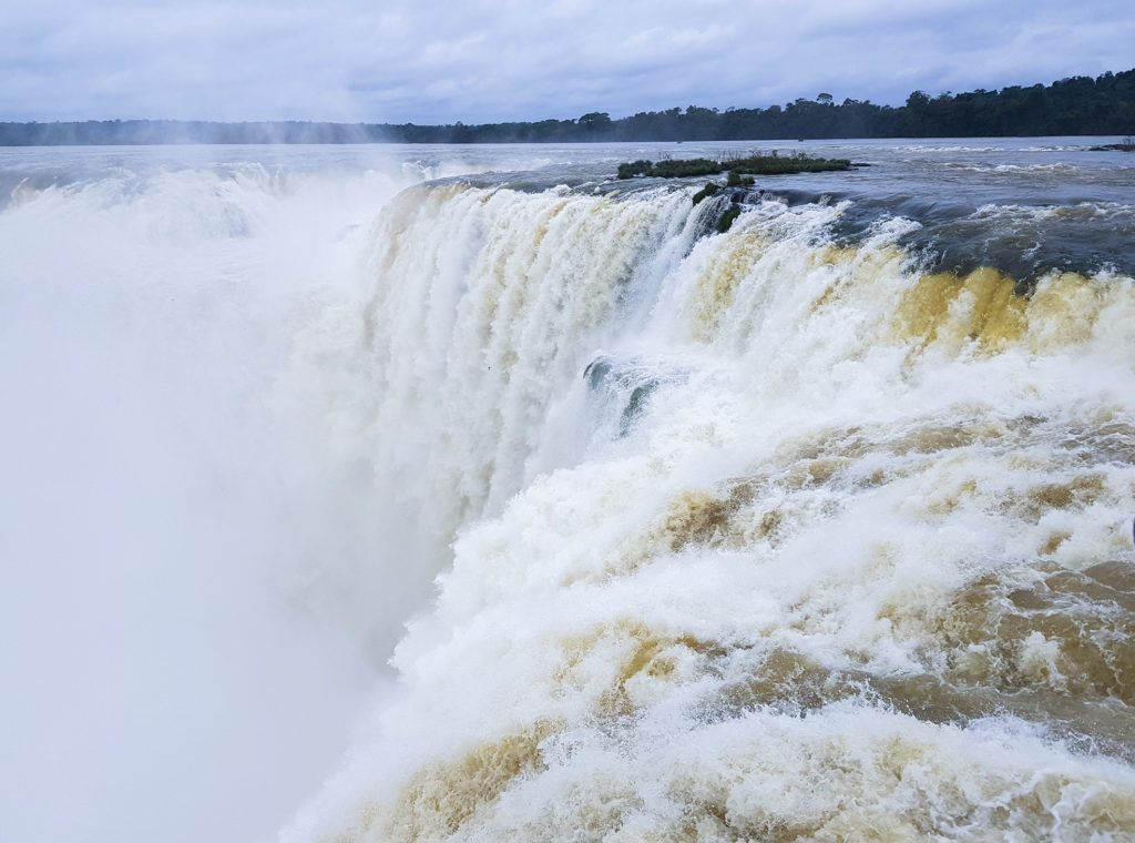 The Devil’s Throat is just a sensational experience in itself…Vast volumes of water plummet over the highest point of the falls, creating a thunderous roar which reverberates around one…There is a constant mist so thick that it is better described as rain pelting visitors who venture out to the precariously perched walkway erected right over the boiling waters below. Wow…hang onto your waterproof cellphone or GoPro as you hastily snap some cool shots and shoot some video of this unique assault on your senses. It makes for a really powerful introduction the the Iguazu Falls at its mightiest…